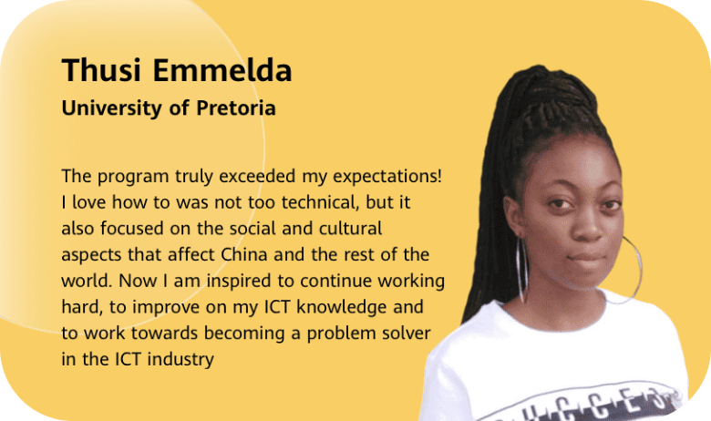 Hear from past participants about their life-changing experience in the Seeds for the Future program. Our alumni have gone on to exciting careers in technology and innovation, and credit the program with providing them with the skills and knowledge to succeed. Read their stories and discover the impact that Seeds for the Future can have on your future!